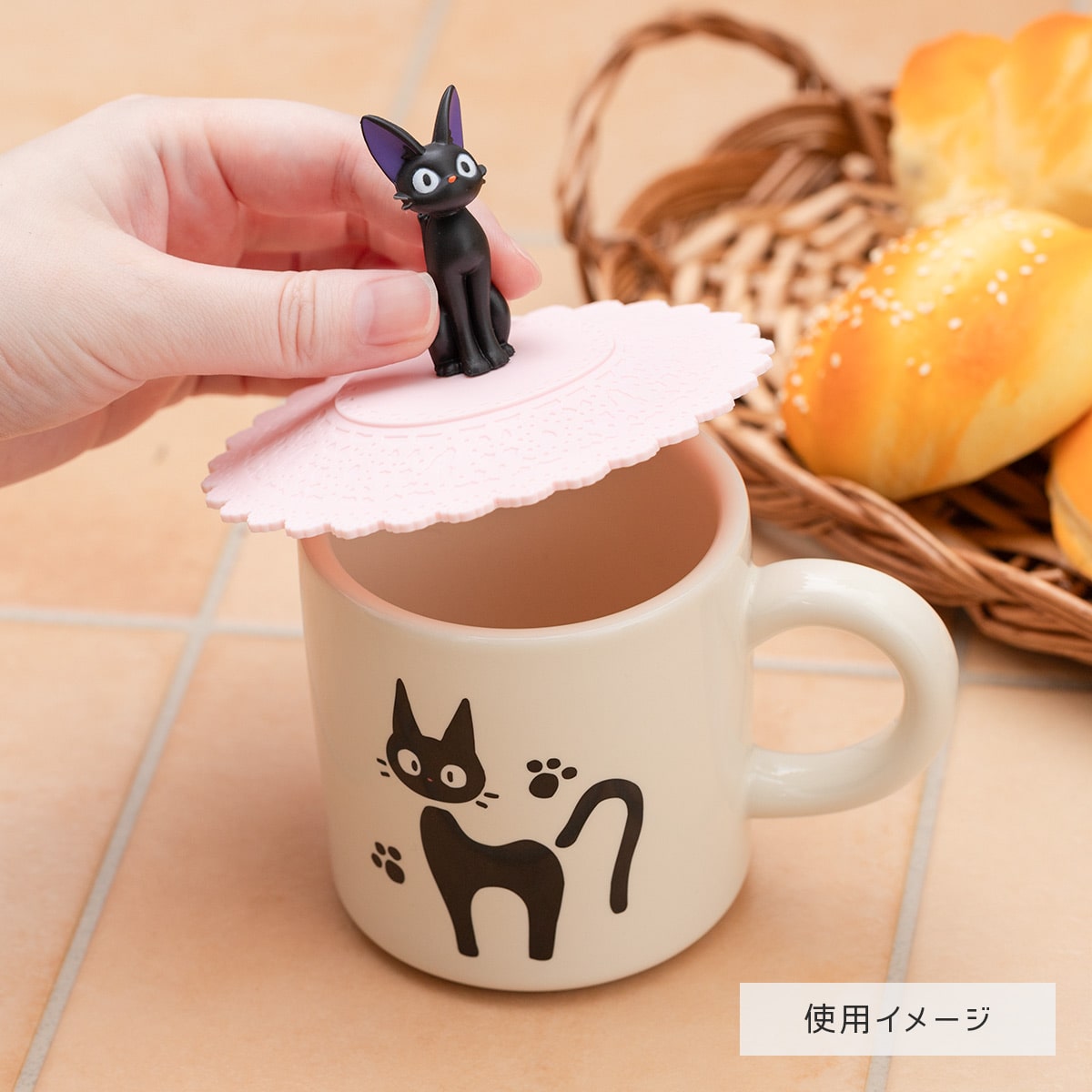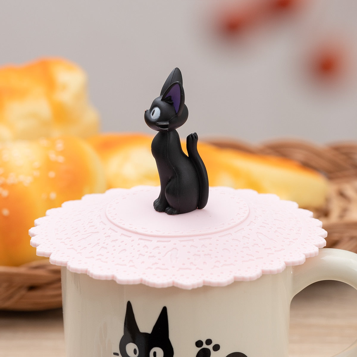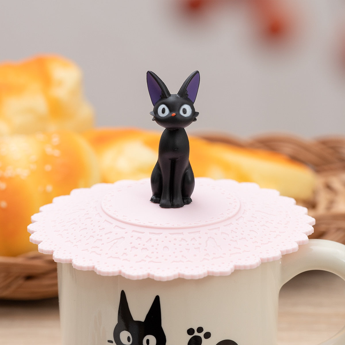 Toto silikonové víčko na hrnek zdobí roztomilý Jiji v nafoukané póze. Samotná silikonová část má krajkový vzor a při bližším pohledu uvidíte i Jijiho siluetu.