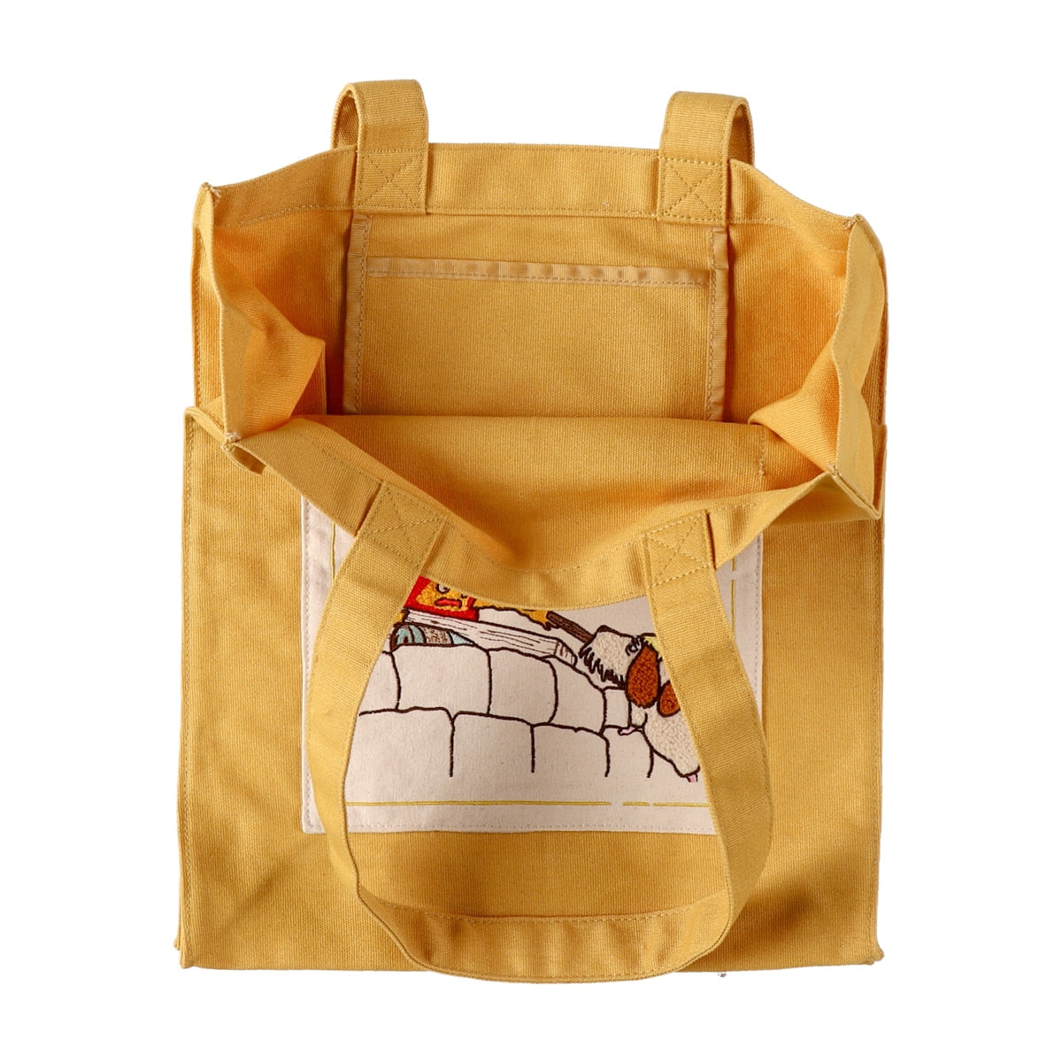 Barevné a pevné plátno, prostorné dno a praktické kapsy – jedna vpředu a jedna uvnitř – ti zajistí dostatek místa na všechny drobnosti.
